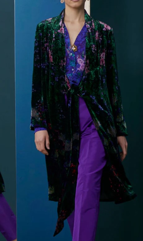 Abrigo en terciopelo estampado "floral sobre encaje".