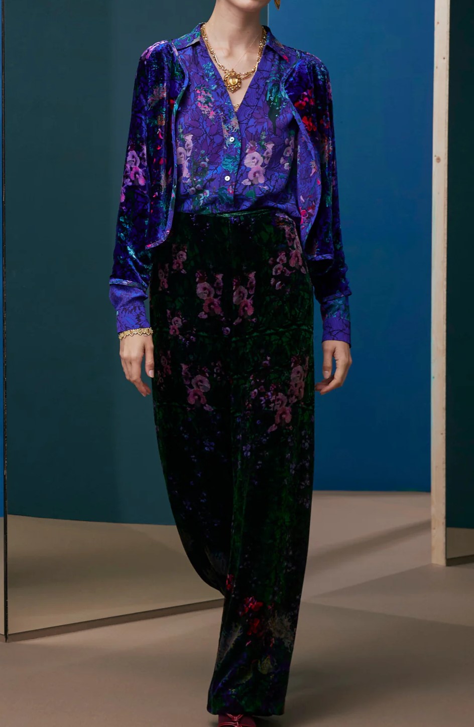 Chaqueta terciopelo estampado "floral sobre encaje".