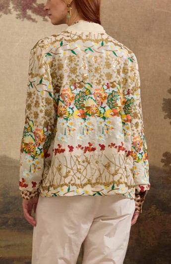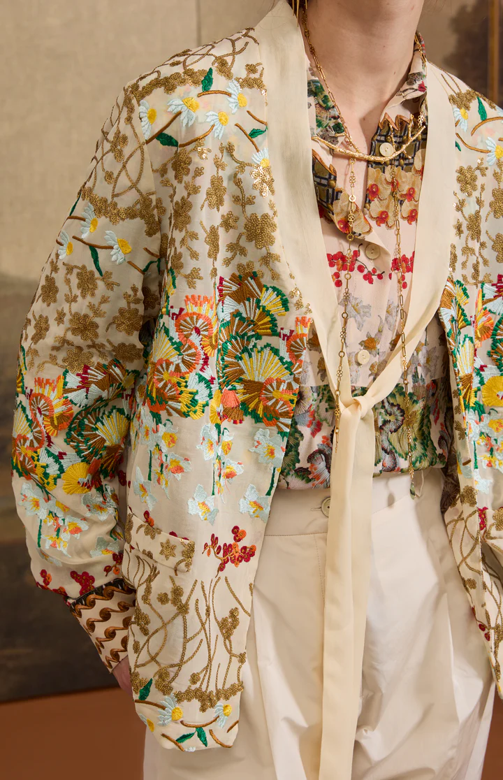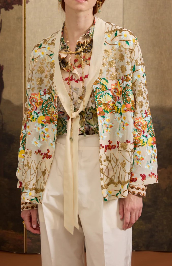 Chaqueta bordado "mosaicos pompeya" de manga larga y con lazo para abrochar.