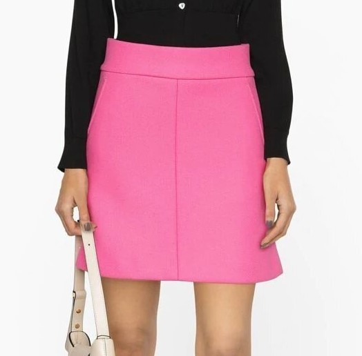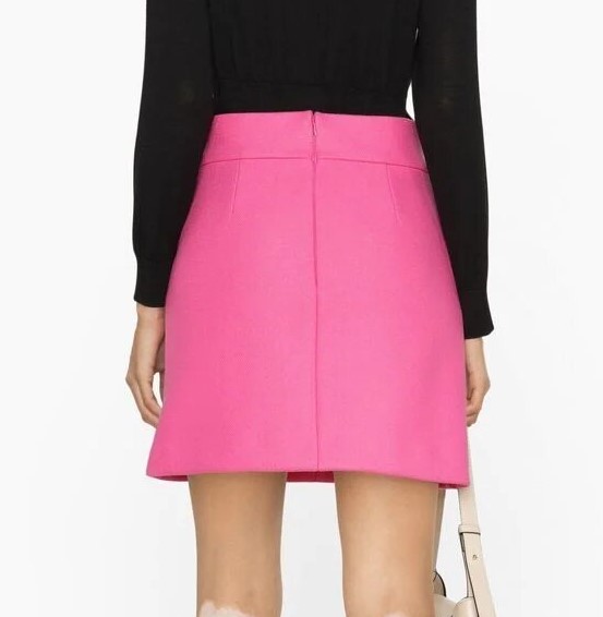 Minifalda acampanada de cintura alta, mezcla de lana, talle alto, cierre con cremallera en la parte posterior, dobladillo recto y diseño hasta el muslo.