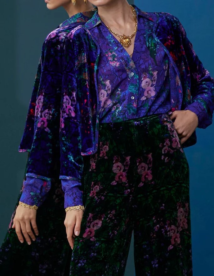 Pantalón en terciopelo estampado “Floral sobre encaje".