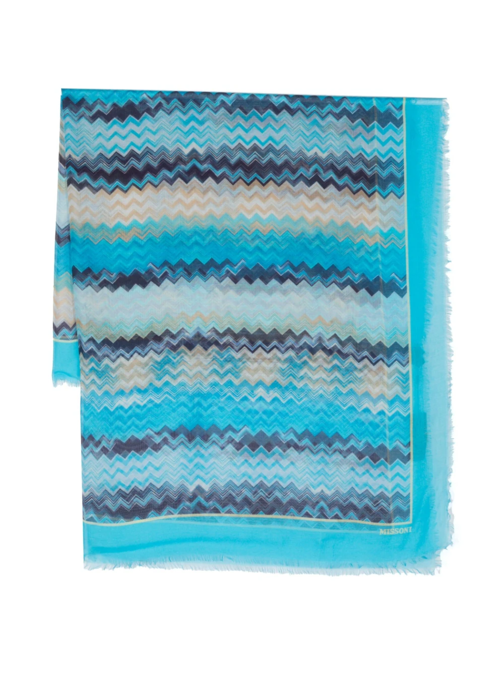 Bufanda con estampado en zigzag, multicolor, mezcla de modal, ribete en contraste y borde con flecos.