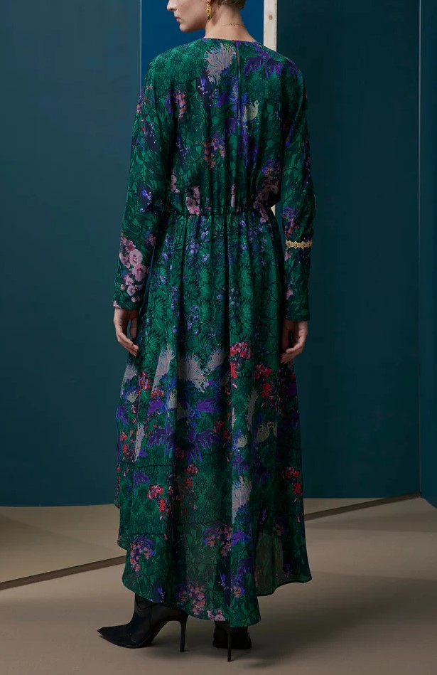 Vestido de cuello redondo estampado "floral sobre encaje".