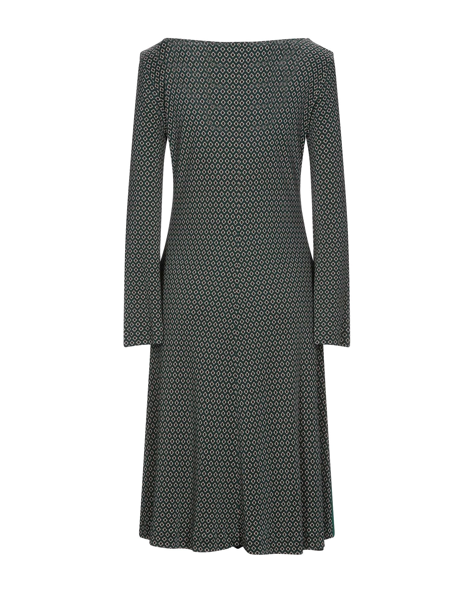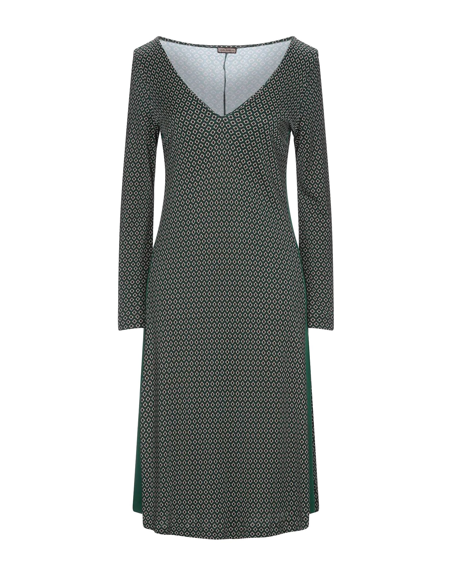 Vestido en punto jersey, sin aplicaciones, estampado multicolor, escote en v, manga larga, sin bolsillo, interior sin forro. Color verde.